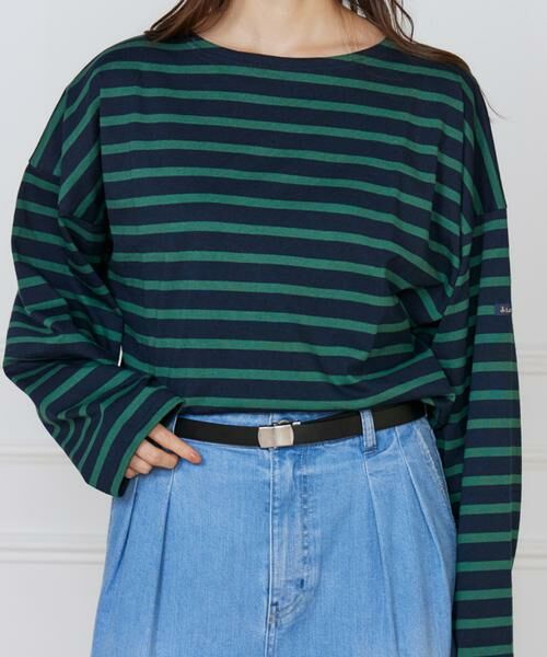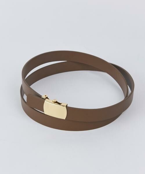 シンプルながらもコーディネートを引き締めるレザーベルト。バックルはガチャベルト仕様なので、バランスを選ばずコーディネート可能。コンパクトなバックルも大人な印象です。