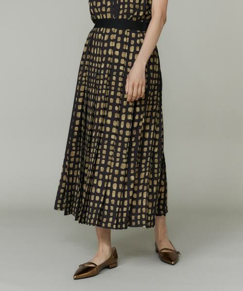 INEDオリジナルプリントのプリーツスカートです。ロング丈のプリーツスカートはプリント柄の表情に変化をつけ、シックな印象で着ていただけます。縦に流れるプリーツのラインが、全身をすっきりと見せる効果も。INEDらしい遊び心あるデフォルメされたチェックで他にはない大人な柄に仕上げています。程良い落ち感とドライなタッチな素材を使用する事ですっきりと仕上げました。