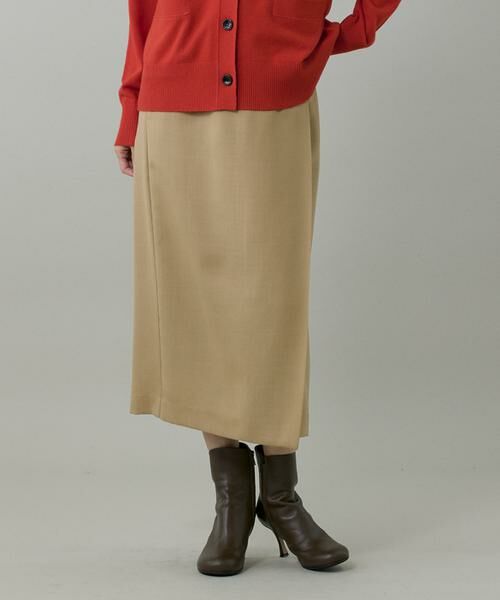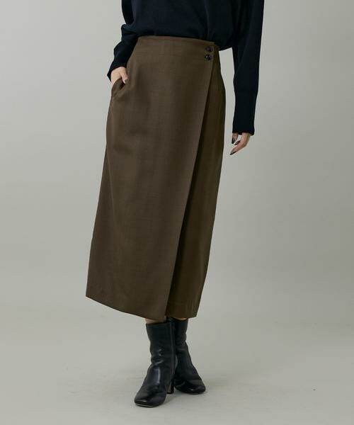エレガントなロング丈のラップスカート。ウエストから緩やかに広がるラインが、大人の女性らしい上品な佇まいを演出。フロントには深めのスリットを施し、抜け感と軽やかさをプラス。シンプルながらも洗練されたデザインで、オンオフ問わず多彩なスタイリングにフィットする一枚です。