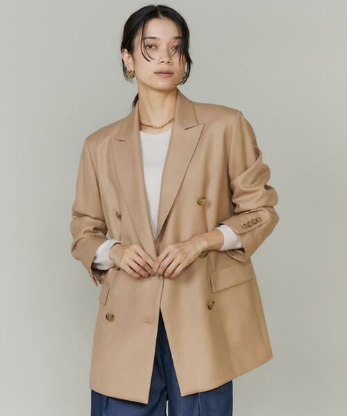 大人の秋冬シーズンにぴったりのダブルブレストジャケット。クラス感のあるメイドインジャパン素材が着用シーンを選ばず、印象良くまとまります。仕立てはメンズライクなボックスシルエット。肩パッド入りでマニッシュな印象を演出しつつも、襟は細身のピークドラペルデザインで仕上げ、艶っぽさを感じるこだわりのシルエットです。裏地にはキュプラを使用し、滑りも良く着心地のよさも兼ね備えた逸品です。