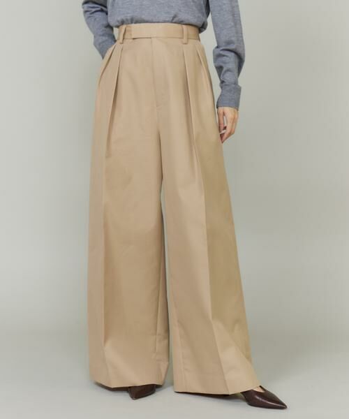 深めの股上、ワイドレッグが新しい大人チノパンツ。フロントに施したツータックとフルレングスが着回しのしやすいシルエットに。ワイド幅で今っぽいスタイリングが決まる1着です。すっきりとしたウエストデザインでトップスをインすれば女性らしくメリハリのあるバランスでお召しいただけます。