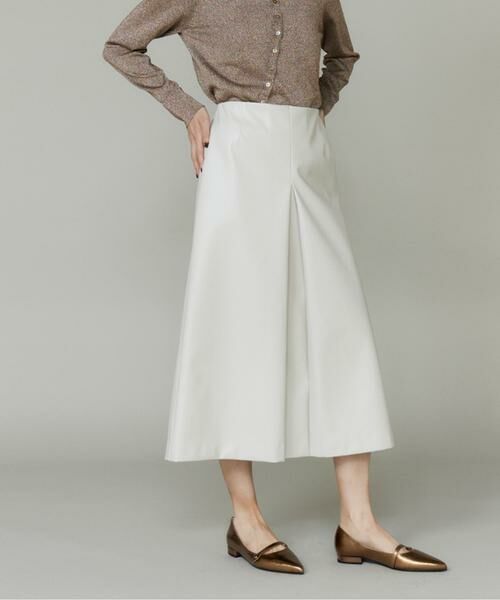レディ度を引き立てる上品なフェイクレザースカート。洗練された印象に導くIラインシルエットに、ウエスト周りをすっきりとさせたミニマルデザインで美しいシルエットに。バックファスナーで着脱のしやすさ◎。きれいめはもちろん、Tシャツなどカジュアルアイテムとのスタイリングもおすすめです。
