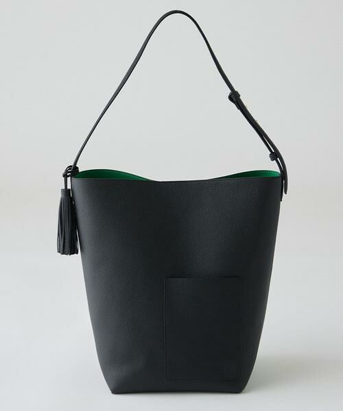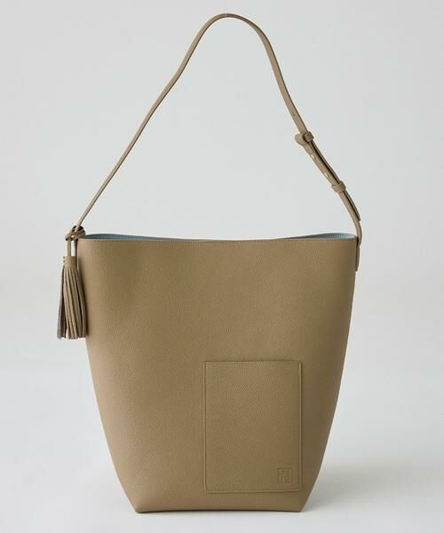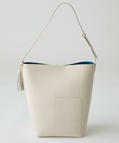 パソコンも収まる容量の多いワンショルダートートバッグ。細めのストラップと大きめのボディとの対比のアンバランスさが魅力的なシルエットを作り出しています。内側のバイカラー仕様と取り外し可のフリンジチャームがさりげなく主張するのもポイントです。自立型でカジュアルなシーンでも活躍します。