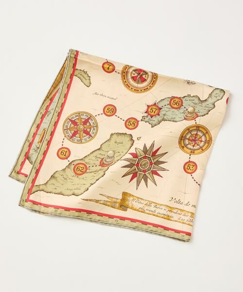 大航海時代、イタリアから船旅で未知の世界へ旅立ったマルコポーロやコロンブスからインスピレーションを受け、一つの人生ゲームとして描いた一枚。ゲームのタイトルvolta do marはポルトガル語で「海からの帰還」という意味があります。manipuriのスカーフは、日本の職人が1枚ずつ手捺染し、端を手巻きで仕上げております。生地は12匁綾織りシルクを使用。薄すぎず厚すぎず、とても滑らかです。シルクの艶やかな光沢感がカラーリングに更に明るさをプラスしてくれるので、コーディネートがぐっと華やかになります。