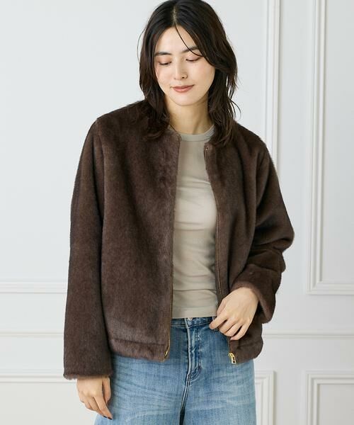 高級感のあるミンクライクファーで仕立てたことにより、上品さもプラスされたブルゾン。適度なゆとりがあり、防寒性も高く、ざっくりした厚手のニットなどにも合わせやすいアイテムです。エレガントにワントーンでまとめても、カットソーやニットパンツとカジュアルに着こなしても様になります。