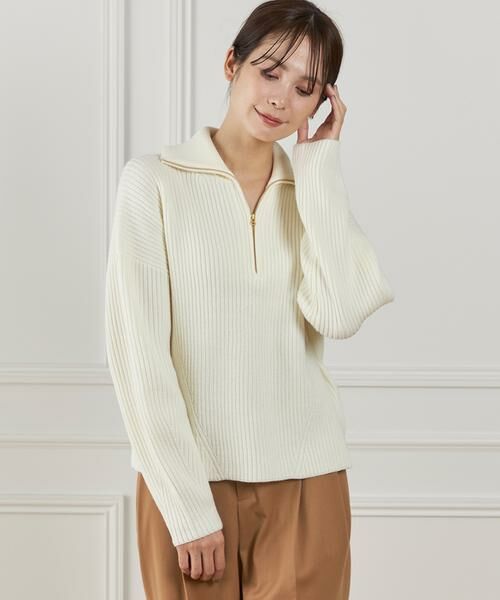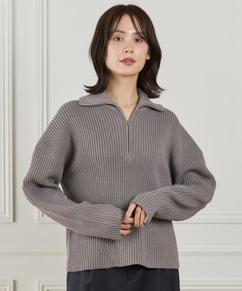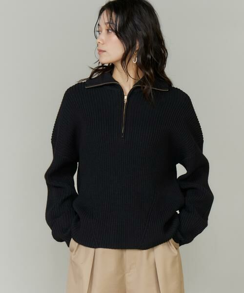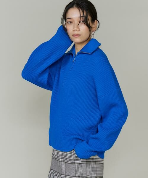 様々な着こなしのアレンジが出来るハーフジップのプルオーバー。上下お好みの位置でファスナーを調整してインナーを覗かせたレイヤードスタイルや、一枚着風での着こなしなど、さまざまなアレンジが楽しめます。ゆったりとしたサイジングで、程よい抜け感を演出できる一枚。ざっくりと編まれてた縦方向の柄と前身頃に入れた柄によりスッキリと見せる目線効果も嬉しいデザインです。