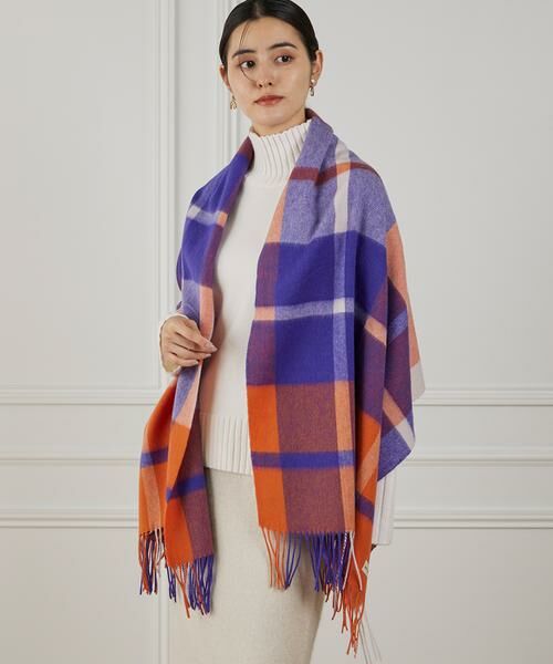 大柄のチェックがアクセントになるウール100%のストール。鮮やかなカラーが、コーディネートのポイントになってくれます。ギフトにもおすすめのアイテムです。