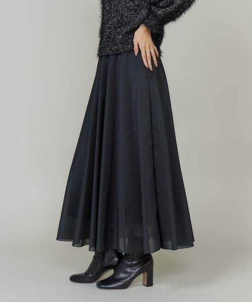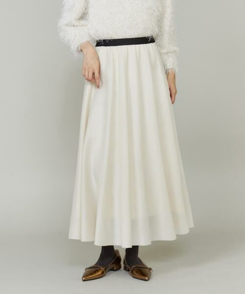 ナローなシルエットのフレアスカート。シェルプリーツによるフレアーは、程よく身体に沿いながらきれいなシルエット。ウエストゴムのデザインで穿き心地の良さは抜群です。さまざまなシルエットのトップスと相性も良く、秋冬のデイリーボトムとして幅広く活躍してくれる万能なアイテムです。
