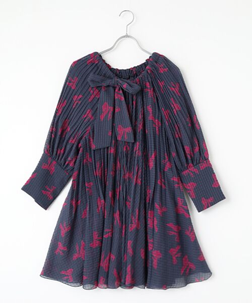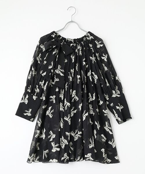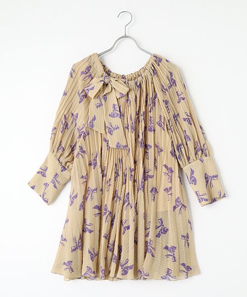 手書き風のリボンをモチーフにした、どこか温もりを感じるシンプルなプリントが魅力のチュニックブラウス。