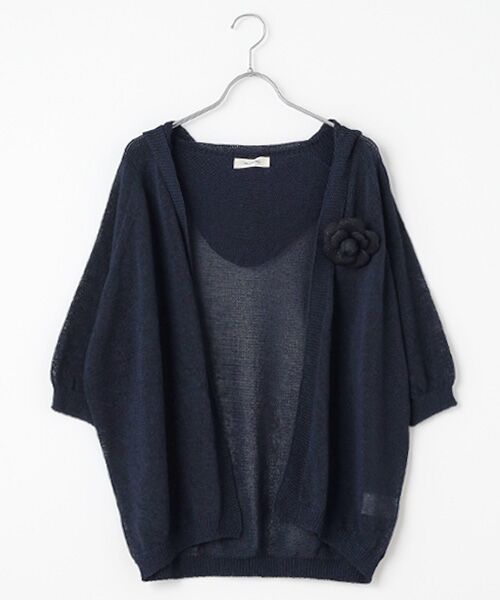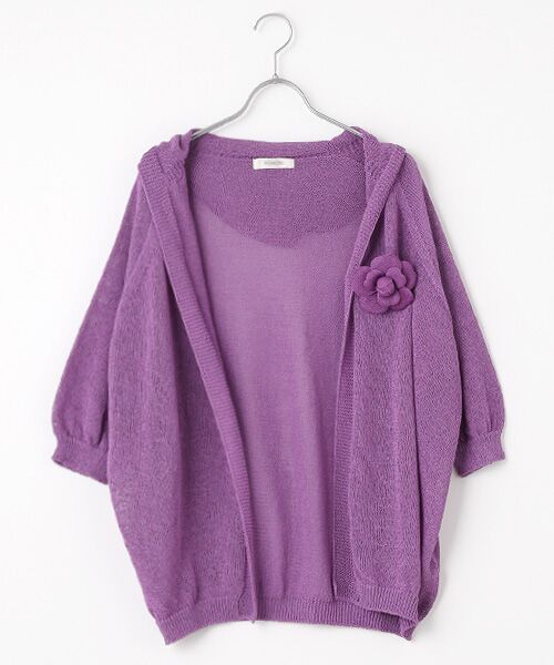 和紙素材の涼やかさと上品なアクセントが光る、フード付きニットカーディガン
