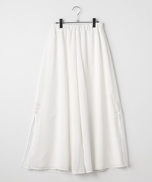 外側には透け感のあるシフォンを重ね、歩くたびにふわりと揺れる軽やかなシルエットが魅力です。