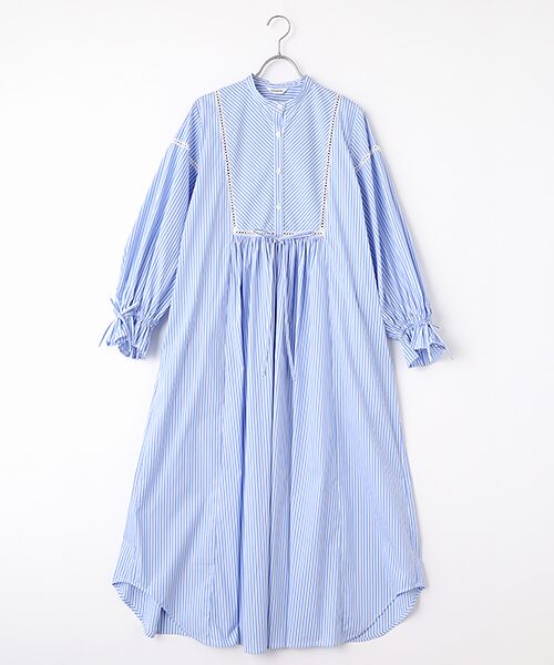ヨーク部分と袖の高めの位置に繊細なハシゴレースを配し、上品なアクセントに。