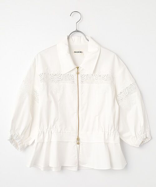 ヨークと袖に施された繊細な透かしレースが女性らしい華やかさをプラス。