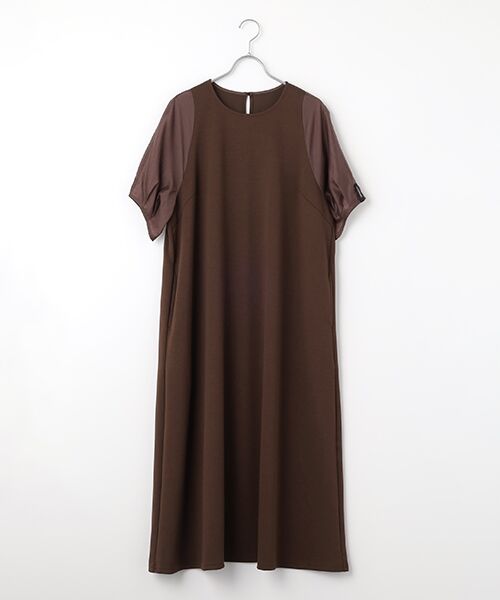 クルーネックの襟ぐりがすっきりとした印象のロングワンピース。
