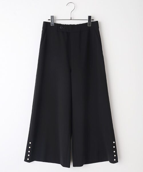 裾に向かって広がる美しいシルエットに、サイド裾のパール調ボタンがさりげないアクセントをプラス。