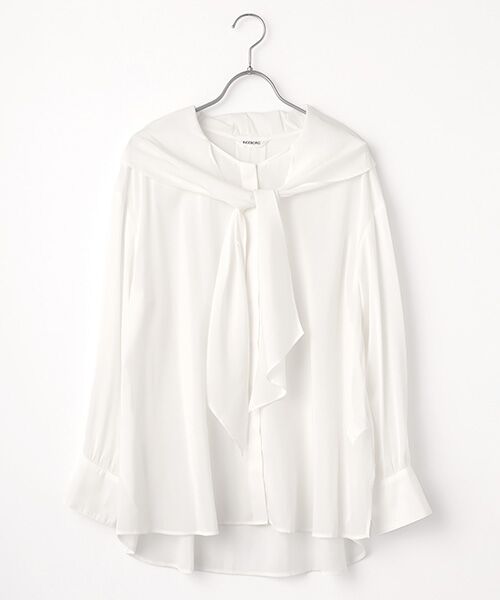 シルク特有の優雅な艶とさらりとしたドライな風合いを併せ持つ、上質なシルク複合素材を使用した長袖ブラウスです。