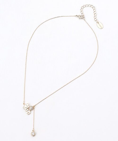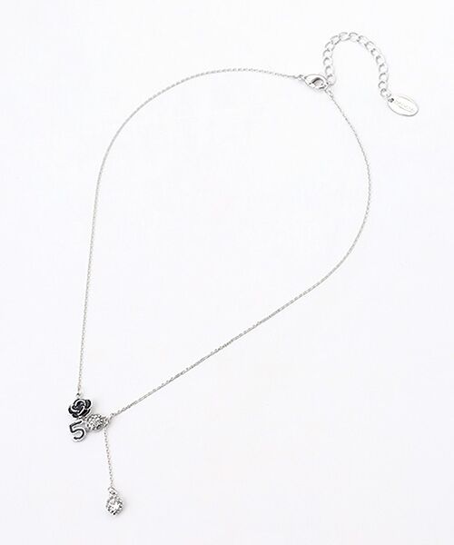 細やかなチェーンに、上品なカメリアチャーム、個性的なナンバーチャーム、そして洗練されたサークルチャームが揺れる華やかなネックレス。