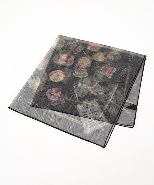 透け感のある柔らかなチュール素材に、スイーツをモチーフにしたケーキ柄をレイアウト。
