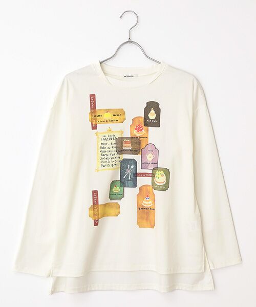 フロントには、「Le Salon de INGEBORG カフェ」の看板をモチーフにした、落ち着いた配色の遊び心あるコラージュ柄プリントを施し、個性と品を両立したデザインに。