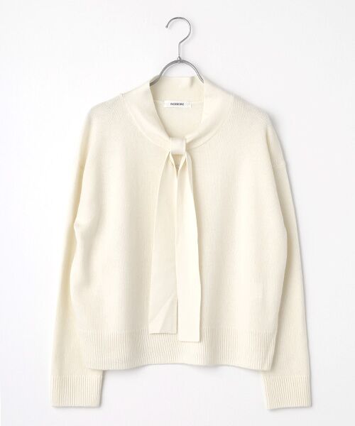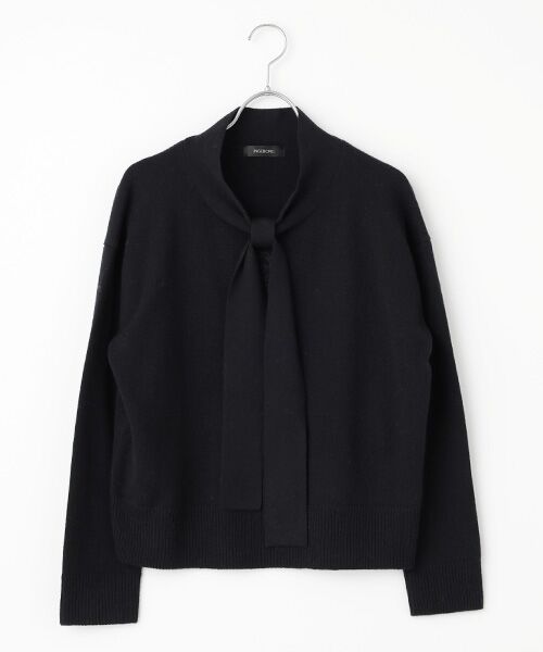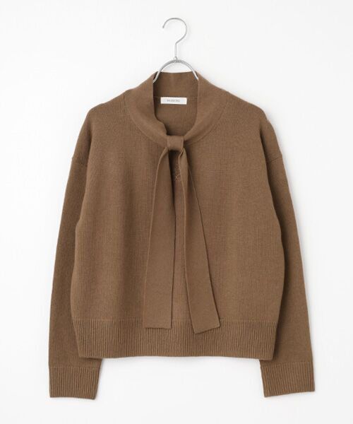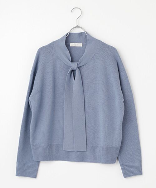 スタンドカラーから続くリボンが、顔まわりに華やかなアクセントを添え、上品な印象を引き立てます。