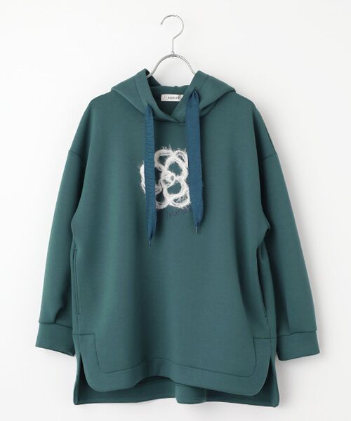 スポンジのような膨らみと柔らかさ、さらに軽やかな着心地を叶えるダンボールニット素材を使用したフーディ。