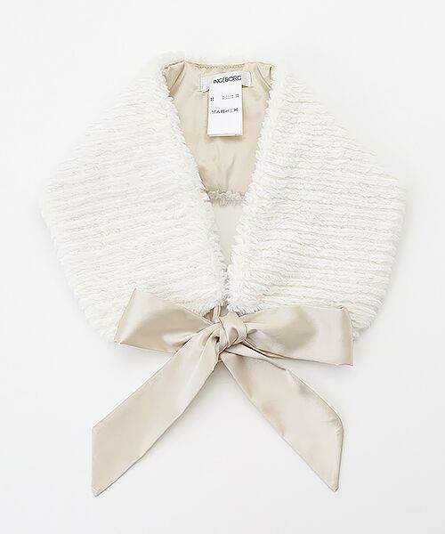 丸みのある襟先が優しい印象をつくり、リボンを結ぶことで、程よくクラシカルな雰囲気に。