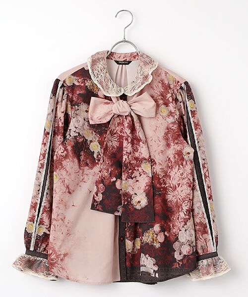 優美なテキスタイルとレースの軽やかさが織りなす、レディライクなプリントブラウス。
