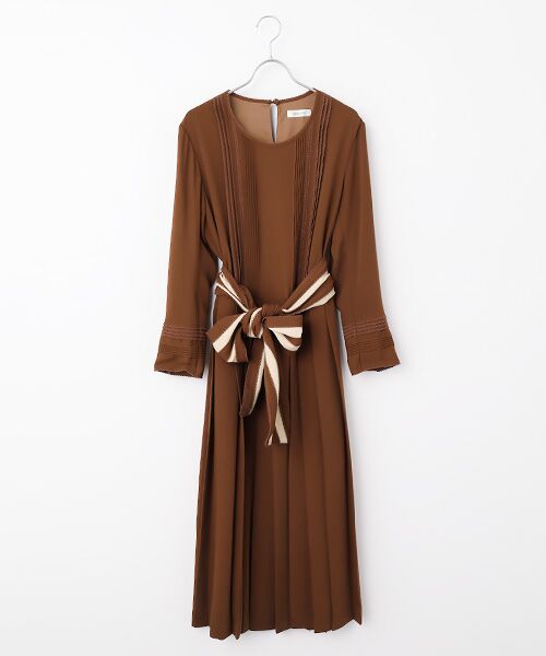 前身頃とカフスには繊細なタックと、可憐な表情を添えるピコットタックを丁寧に施し、スカート部分はエレガントなプリーツ仕様。