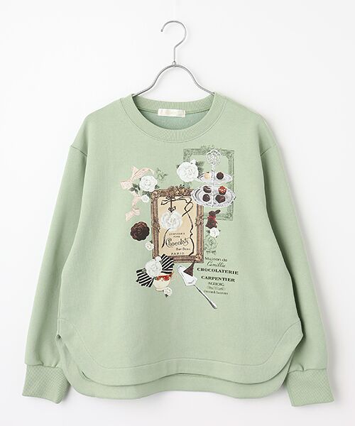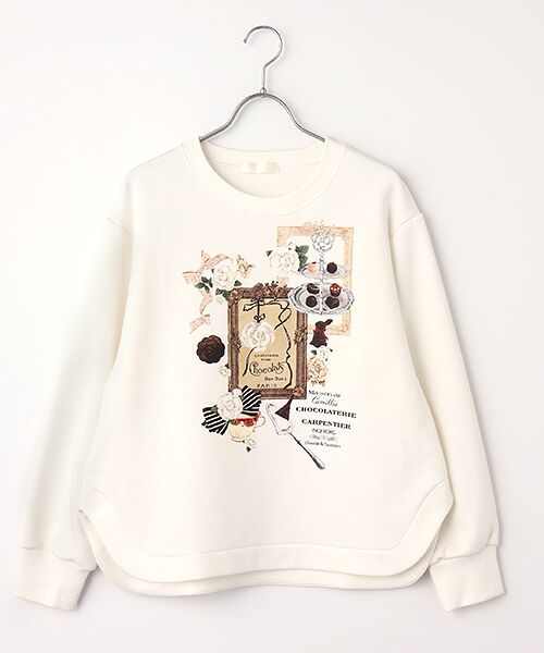その甘く美しい世界を閉じ込めた、INGEBORGのエレガントスイーツ柄『メゾンドカメリアpt.』を前身ごろにプリントしたトレーナーです。