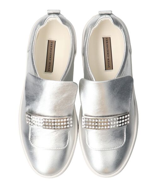 デザイン性と履きやすさを兼ね備えたラインナップに、エッジを利かせたファッショナブルなセレクトで人気のINTER-CHAUSSURES(インター ショシュール)。グローバルな視点とコンセプチュアルな個性が光るシューズセレクトブランドです。ビジュープレートがスタイリッシュな印象のレザースリッポンスニーカーです。