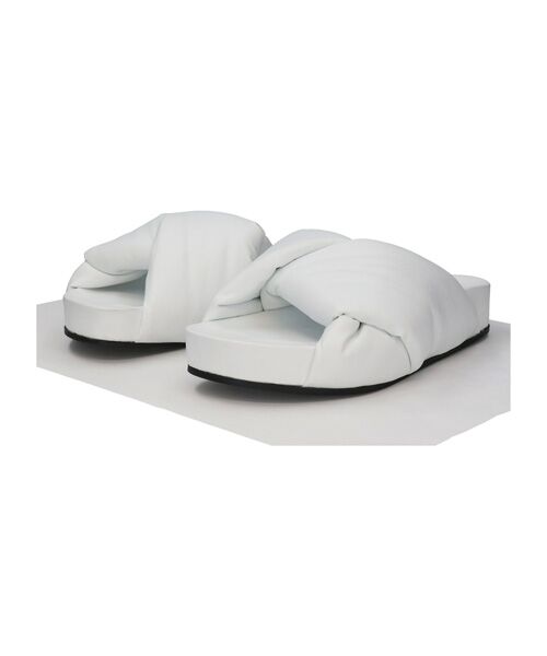 EMILE(エミレ)は イタリア ヴェネト州、 ハイブランドの聖地 ストラにあるファクトリーブランド。 専門的な技術に優れ、新しい空気を吹き込むファッション視点の製品は注目に値します。ミニマルでモードな雰囲気のフットベッドサンダルは、フカフカのパフィーベルトが特徴的な一足。