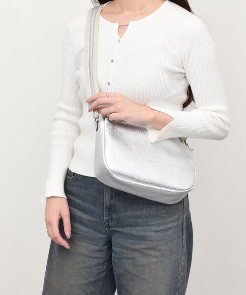 1967年創業した老舗バッグメーカー。長年培ってきたイタリアの職人技によってリパーニ特有のデザインを生み出しています。生産はすべて敷地内にある自社工場でというポリシーを貫き、品質の管理にも重点を置いています。軽い・柔らかい・機能的をベースに、シンプルなデザインに女性らしさとトラッド感を持たせたバッグコレクションとなっています。メタリックレザーの素材感が涼し気な印象のショルダーバッグです。