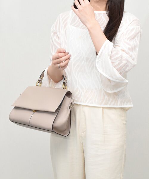 2002年イタリア、アブルッツォ州にて創業されたブランド、ロリステッラ。デザイン、パターン、ファブリック、縫製まで徹底したMade in italyにこだわり、モダンでスタイリッシュなフォルムにフェミニンな要素を取り入れたデザインは欧州を中心にとても人気があります。背面にポーチが付いたシュリンクレザーがソフト質感のフラップハンドバッグです。