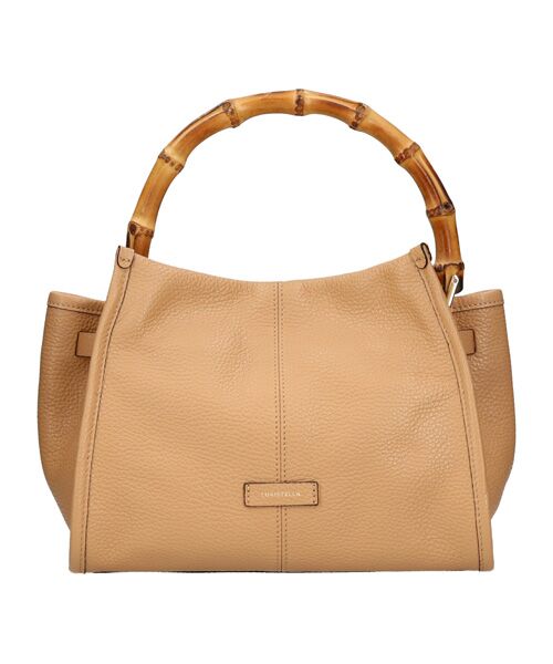 2002年イタリア、アブルッツォ州にて創業されたブランド、ロリステッラ。デザイン、パターン、ファブリック、縫製まで徹底したMade in italyにこだわり、モダンでスタイリッシュなフォルムにフェミニンな要素を取り入れたデザインは欧州を中心にとても人気があります。バンブーハンドルが春夏らしい印象のソフトレザーハンドバッグです。ストラップ付。
