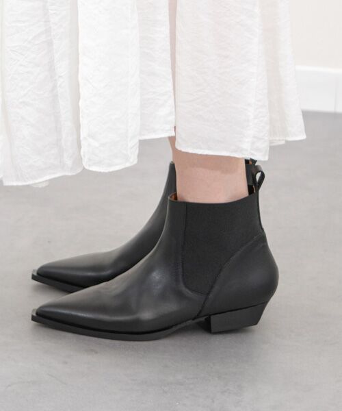 【ANGEL ALARCON/アンヘル アラルコン】ANGEL ALARCON (アンヘル アラルコン)は、スペインの婦人靴ブランドです。1999年にスタートしデザインから生産まで一貫してスペインで行っています。女性に毎日、心地良く且つ魅力的な靴を履いてもらいたいという理念のもと、現在ではヨーロッパのみならず、オーストラリア、カナダ、日本と展開を世界へ広げています。ヒールの形状やトウシェイプがウエスタンテイストなポインテッドトウのサイドゴアブーツです。