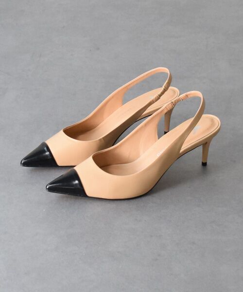 バイカラーのポインテッドトゥがスタイリッシュなバックストラップパンプス。
