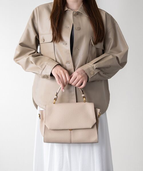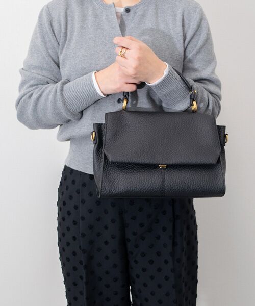 【LORISTELLA/ロリステッラ】2002年イタリア、アブルッツォ州にて創業されたブランド、ロリステッラ。デザイン、パターン、ファブリック、縫製まで徹底したMade in italyにこだわり、モダンでスタイリッシュなフォルムにフェミニンな要素を取り入れたデザインは欧州を中心にとても人気があります。背面にポーチが付いたシュリンクレザーがソフト質感のフラップハンドバッグです。ストラップ、ポーチ付。ファスナー付き内ポケット×1。オープン内ポケット×2。