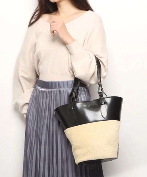 【NOVIA/ノヴィア】NOVIA(ノヴィア)は2019-20年AWシーズンから、日本マーケットに向けて誕生したブランドです。1965年に創業したバレリ社の技術を引き継ぎ、生産しています。NOVIA(ノヴィア)は「新しい」「まっさらな」を意味する、ラテン語源の女性の名前です。シンプルなデザインが際立つ上質感、技術と工夫に裏打ちされた軽量感を持ち味としています。素材使いが女性的で柔らかな印象のバケットバッグです。