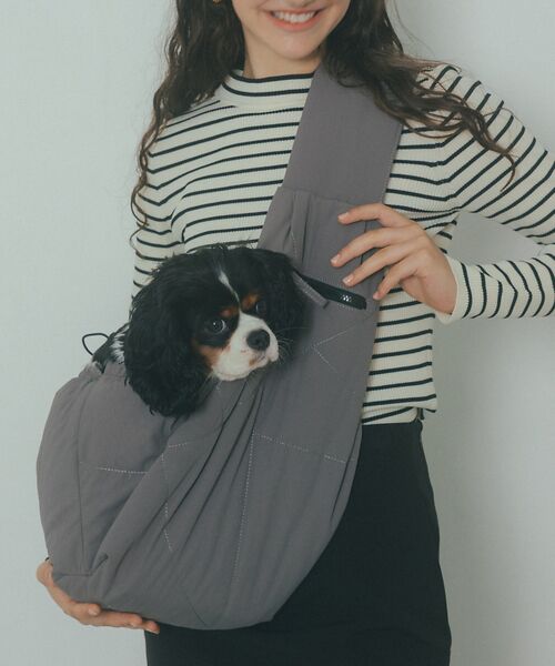 このスリングバッグがある事で一緒に入れるお店が増え、行動範囲が広がったり、愛犬が疲れた時に落ち着く簡易的なベッドになったりできるよう、様々な機能性にこだわりました。