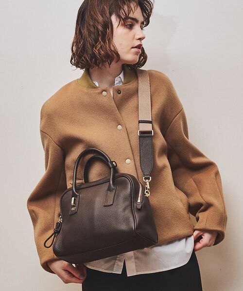 完売していたブラウンが再入荷!!【Design】【Jaunt/ジャント】コンパクトに見えてたっぷり入る、2WAYレザーボストンバッグ。太めのショルダーベルトは肩への負担を軽減し、荷物が多い日にも快適。シーンに合わせて取り外しも可能。500mlペットボトルや折り畳み傘も入る、見た目以上の収納力に加え、開きやすい開口部で荷物の出し入れもスムーズに◎オンにもオフにもフィットする上品なデザインで、毎日のコーディネートに自然と馴染みます。きれいめにもカジュアルにも合わせやすい万能バッグは、金具部分にお気に入りのチャームを付けてアレンジを楽しめます。▼おすすめのチャーム・MERCIチャーム(51515074021)・ロープチャーム(51515074020)【pocket】<内側>前胴:オープンポケット×2背胴:ジップポケット×1<外側>背胴:オープンポケット×1【付属品】取り外し可能アジャスター付テープショルダー×1