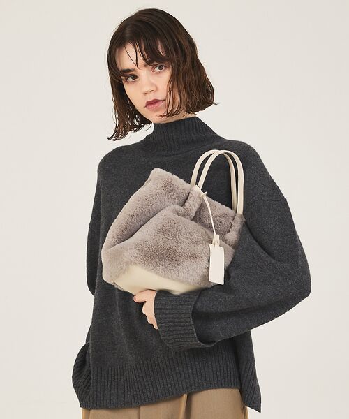 【Design】コロンとした丸いフォルムにふわふわのエコファーが魅力的なトートバッグ。マチありなので500mlペットボトルや長財布、折り畳み傘などの荷物もしっかりと収納可能です。付け外し可能なショルダーが付いているため、コーデや気分によって2WAYで楽しめます。デザイン性と実用性を兼ね備え、秋冬コーデのアクセントに活躍するアイテムです。【pocket】ファスナー付きポケット×1ポケット×2(サイズ違い)開口部:マグネットスナップボタン【付属品】付け外し、長さ調整可能ショルダー