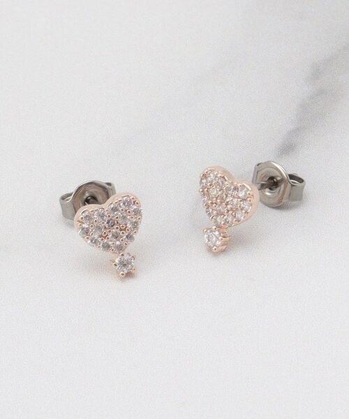 キラキラ輝くキュービックジルコニアを使用した、ハートモチーフのピアスです。