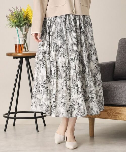 さらりとしたポリエステルデシン素材に春らしい華やかな花柄をプリントしたスカート。