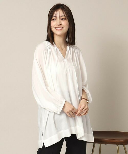 春先に一枚でさらりと着たいスキッパーブラウス。