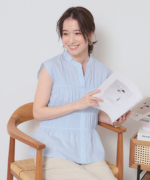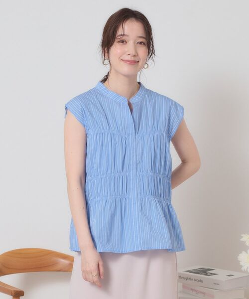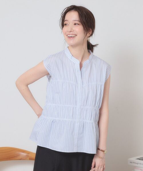 クリーンなムードのストライプ柄が夏のコーディネートにピッタリのブラウス。