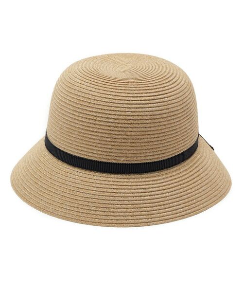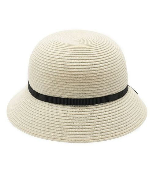 ストライプの細幅リボンがポイントのナチュラルハット。