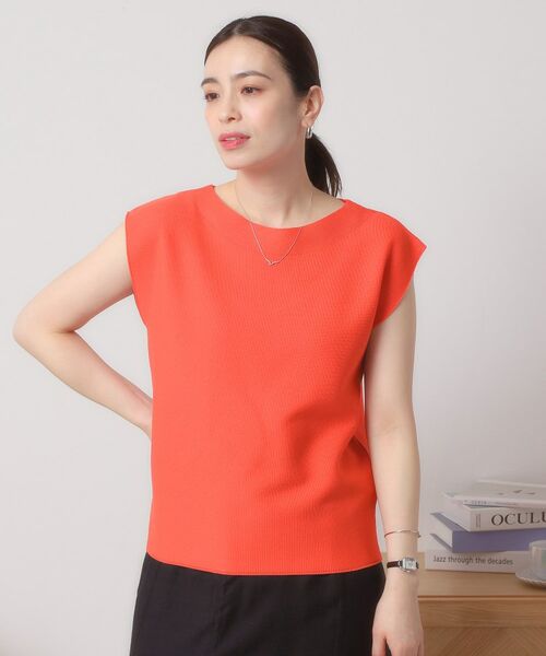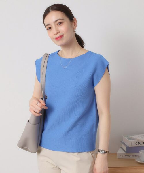 【デザイン】さらりタッチのサマーニット。夏のコーディネートに映える鮮やかなカラーリング。さらりとしたタッチ感の糸を使用したフレンチスリーブニット。シャリ感もあり夏に着やすい清涼感ある素材です。すっきりとしたシンプルなデザインでON、OFF問わず着まわしやすいデザイン。襟元はガーター編みでさり気ないアクセントをプラス。お家で気兼ねなくお洗濯できるのも魅力です。【素材】さらりとした肌触りのニット素材。※照明の関係により、実際よりも色味が違って見える場合があります。また、パソコン・スマートフォンなどの環境により、若干製品と画像のカラーが異なる場合もございます。本商品は、ご注文確定後に取り寄せにてお客様への出荷手配をさせていただきますので、お届けまでに7~10日前後かかる場合がございます。また、商品は他社サイトと在庫を共有しているため、ご注文いただいた商品が欠品となり、キャンセルとなる場合がございます。