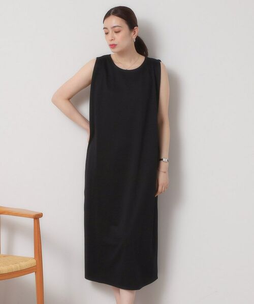 内側に折り込む肩タックのデザインですとんと落ちるすっきりシルエットながらも、身体のラインを拾いにくいゆとりのあるサイズ感で、お腹周りやヒップラインは自然にカバーできるのが魅力。