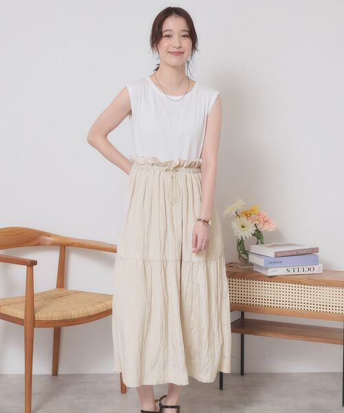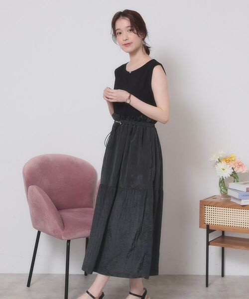 スカート部分はサテンワッシャー生地を使用した光沢感のある表情が特徴。