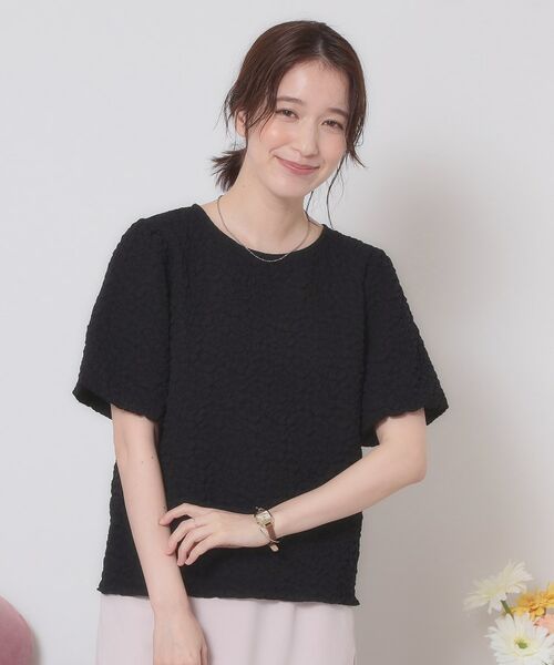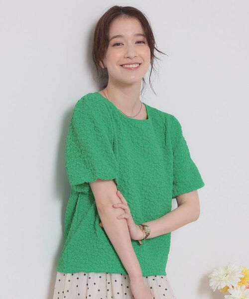ポコポコとした表面感が可愛い花柄のふくれジャカード素材を使用したプルオーバー。